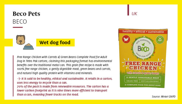 Beco recently launched a range of wet dog foods in Tetra Pak cartons, claiming this packaging format has environmental benefits over the traditional metal can.